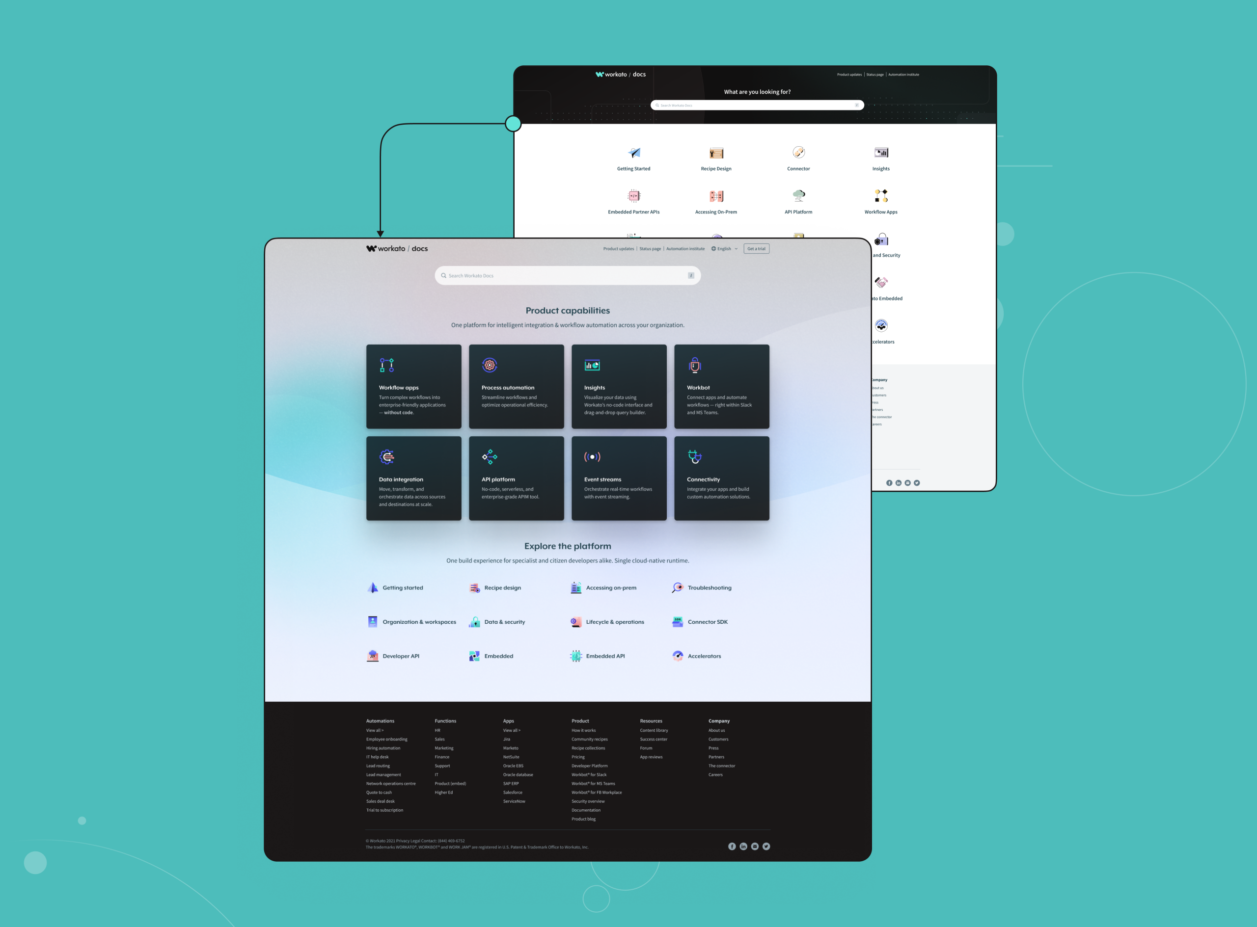 Research insights (implicit from the redesign decisions) showed that users approached documentation with different intents: some were exploring what Workato could do, while others were searching for precise implementation details.
